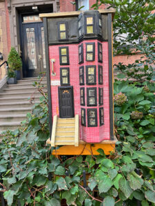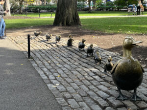 Below: A Back Bay Brownstone thoroughly read for Halloween; a little free library in the area; and the Ducklings on the Commons.